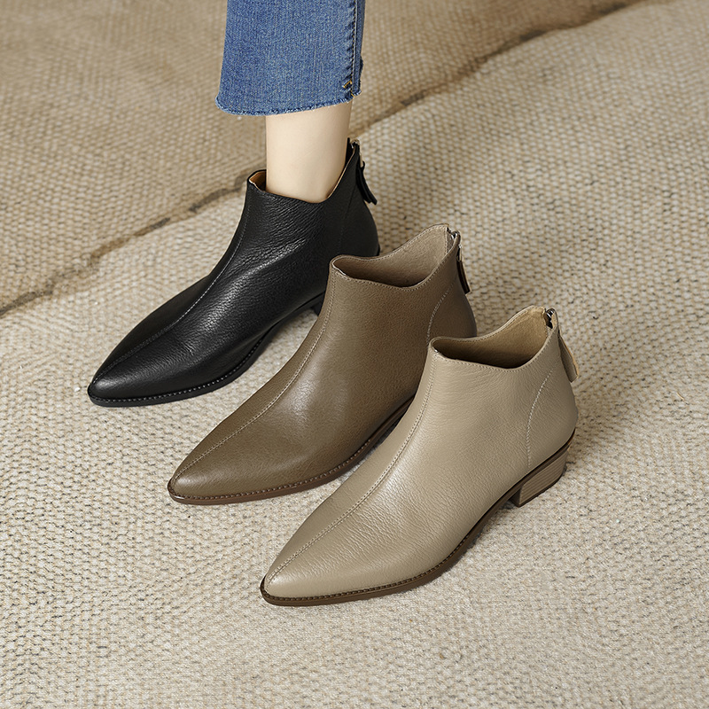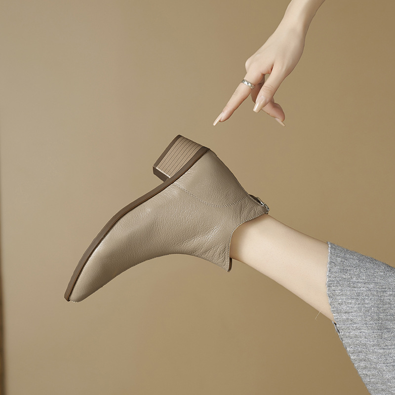 British Martin Boots Women’s Autumn and winter zipper and nude boots thick heels French lean boots short boots