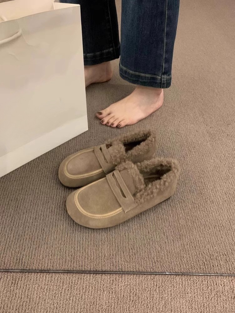 Japanese plus velvet Bolken shoes women in winter lazy people to pedal bean shoes pregnant women with flat bottom warm cotton shoes