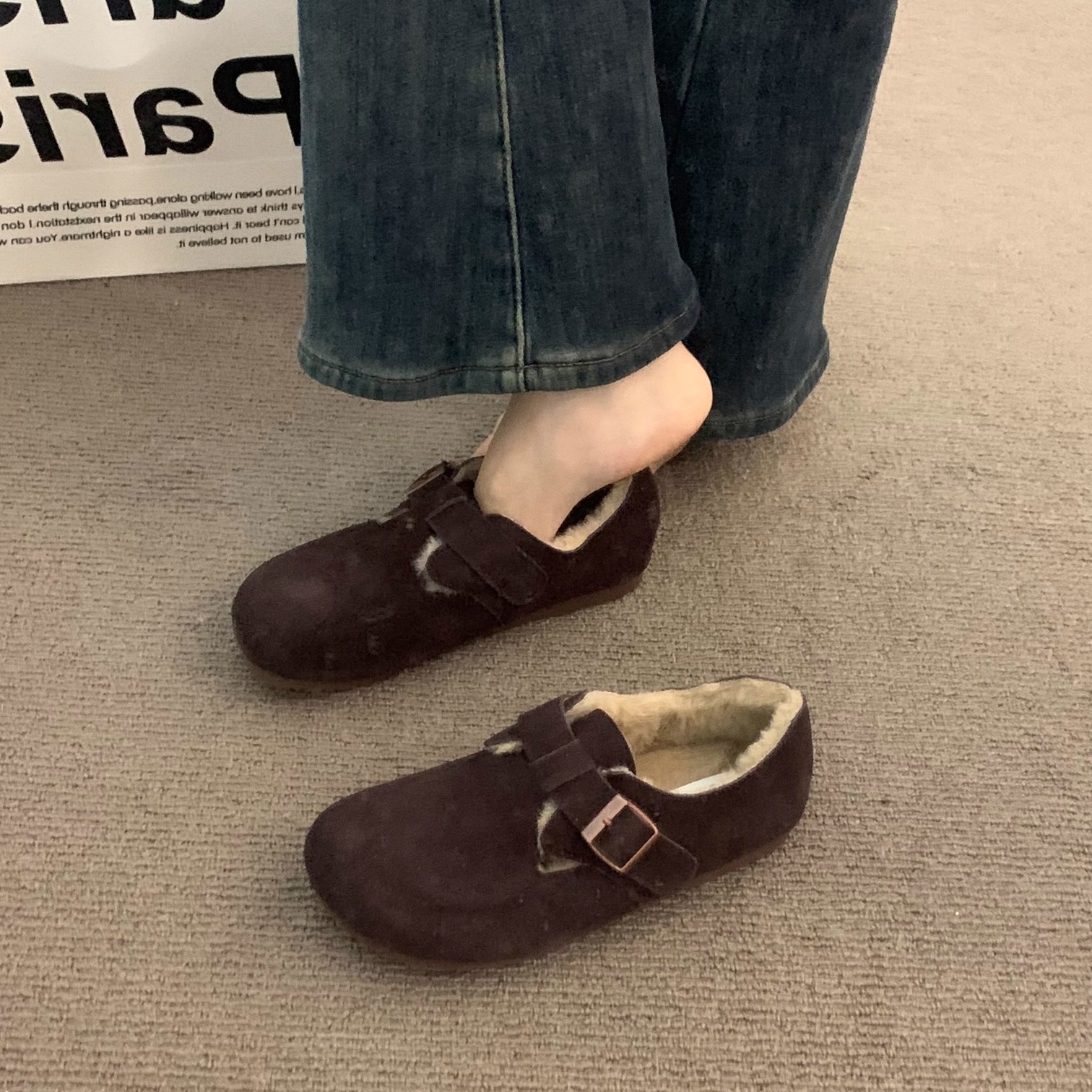 Mori retro round head plus velvet Bolken shoes all -inclusive women wearing ugly cute hair cotton single shoes