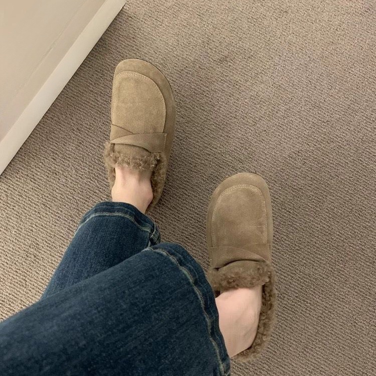 Plel of velvet Bolken shoes female plus velvet women’s shoes in winter hairy shoes, bean bean shoes lazy Bakayan cotton shoes